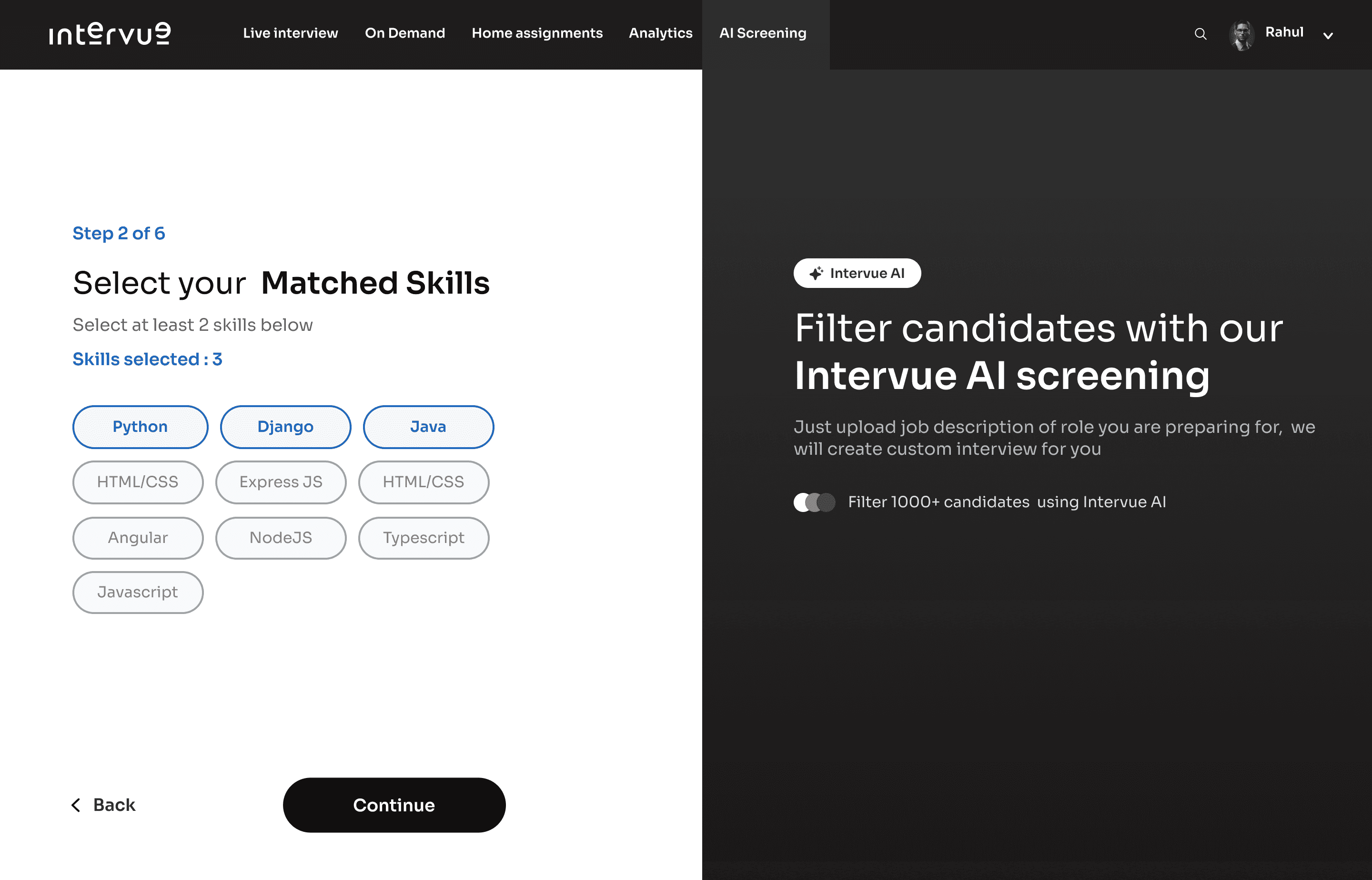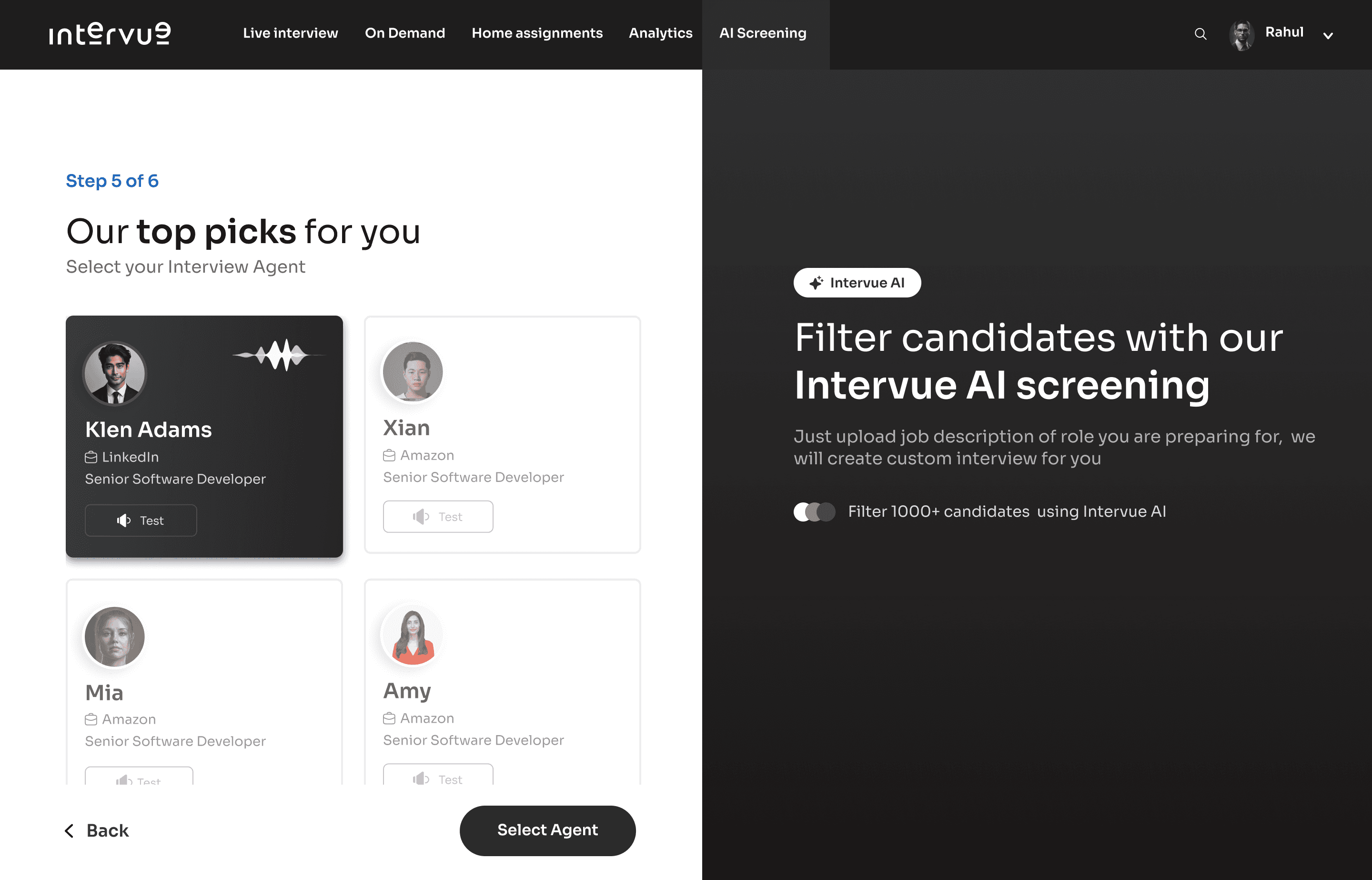 Makes the user (hiring manager) to pick an AI interviewer specialised in their required domain to conduct seamless, unbiased candidate assessments.